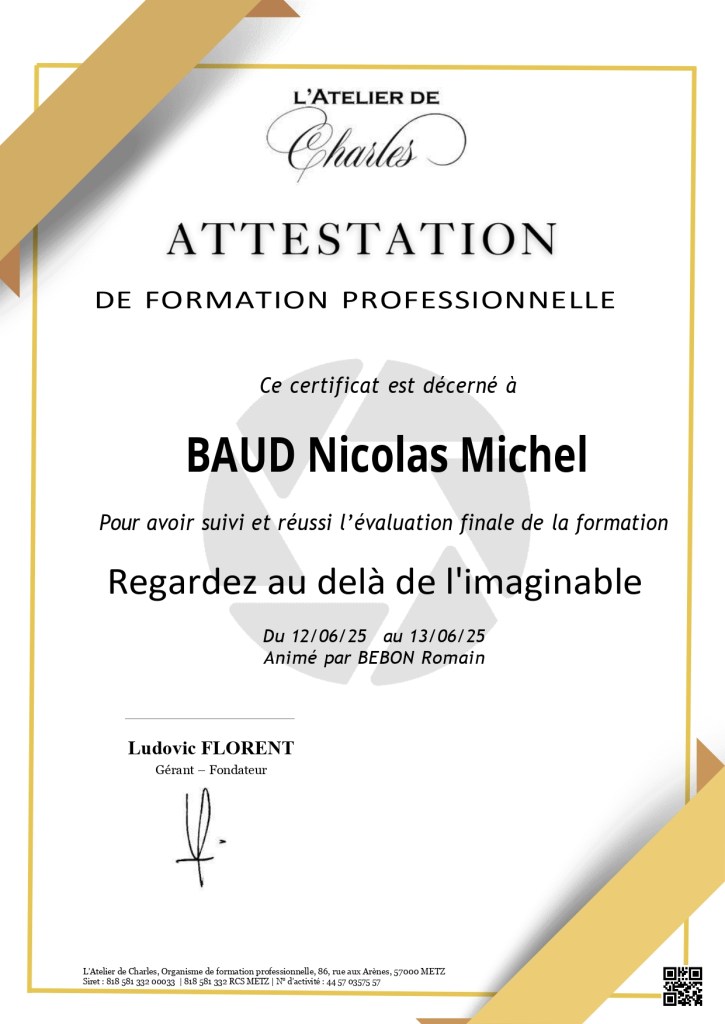 Pour vous offrir des images toujours plus créatives, modernes et fidèles à vos émotions, je me forme en continu aux dernières techniques de prise de vue, de composition et de retouche. La photographie évolue sans cesse, et il est essentiel pour moi de rester à jour, de perfectionner mon regard et de nourrir ma sensibilité artistique. C’est cette exigence de qualité, associée à ma passion pour l’humain, qui me permet de vous proposer des prestations à la hauteur de vos attentes… et même au-delà.